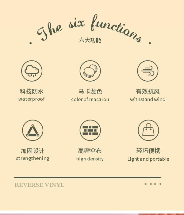 โครงร่ม: ซี่ร่มเหล็กผสมใยไนลอน 6 ซี่ เพิ่มความยืดหยุ่นและทนทาน