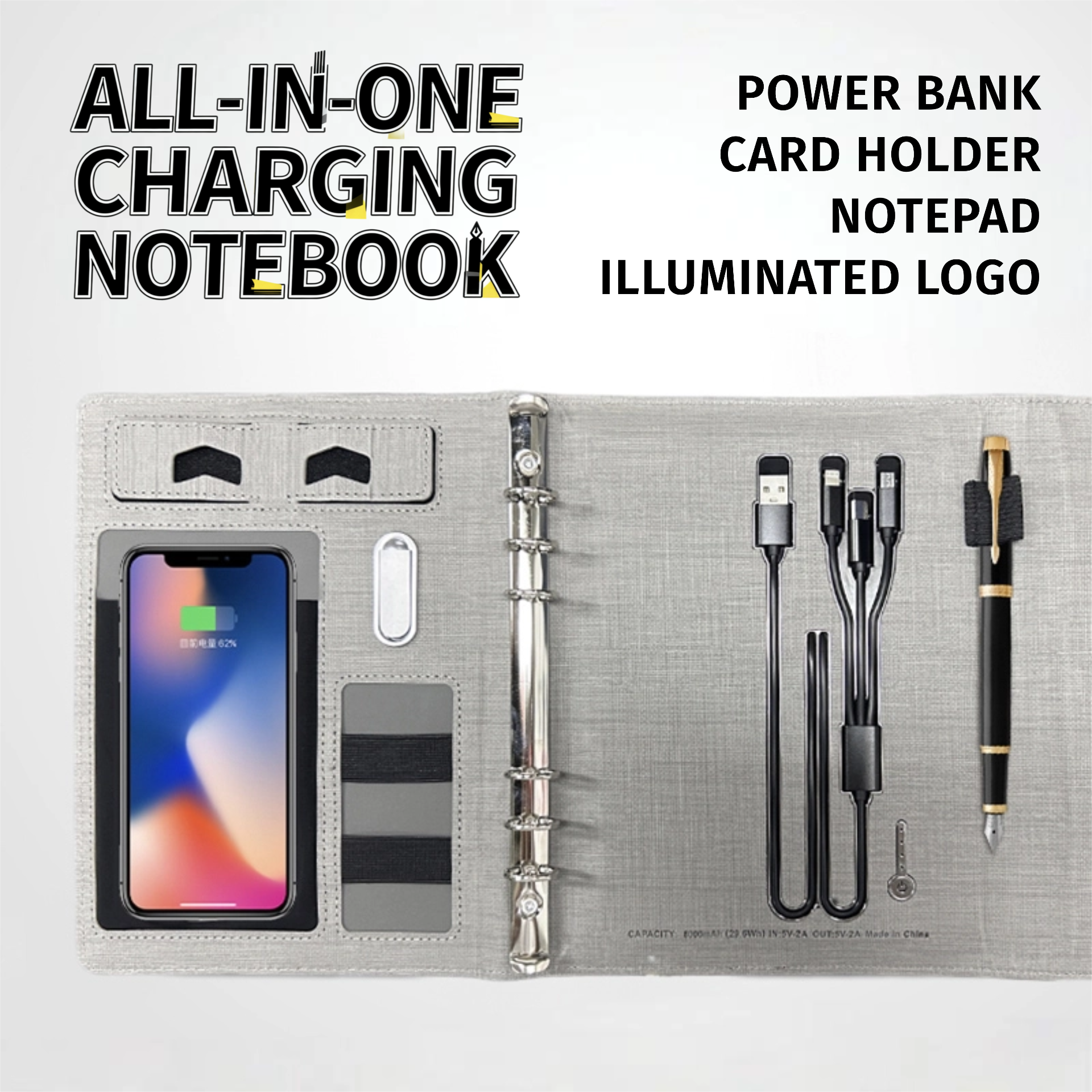 คุณสมบัติเด่น: ไฟ LED แสดงสถานะ, ที่วางโทรศัพท์, ชาร์จไร้สาย, พาวเวอร์แบงค์, การ์ดหน่วยความจำ USB