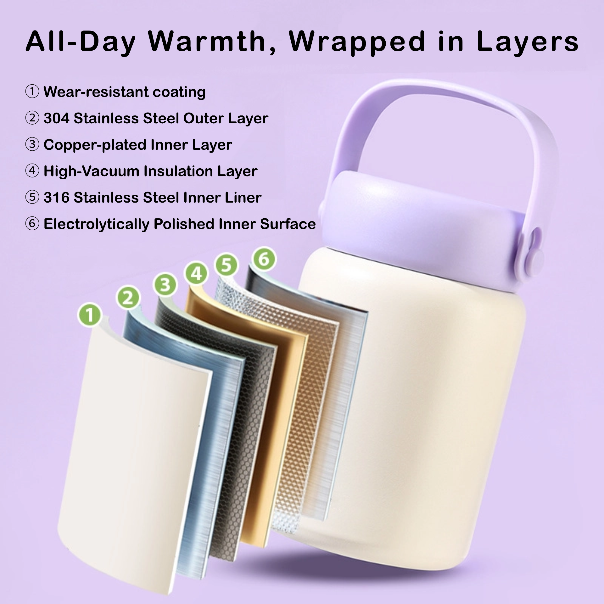 กระบอกน้ำสูญญากาศ กระติกน้ำสแตนเลส ขนาด 500 มล. กระบอกน้ำเก็บอุณหภูมิ เก็บความร้อน-ความเย็น